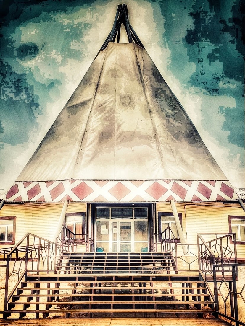 Купол на берегу Байкала, национальной парк Танхой. Диаметр купола 16м, две двери, полноцветная печать.