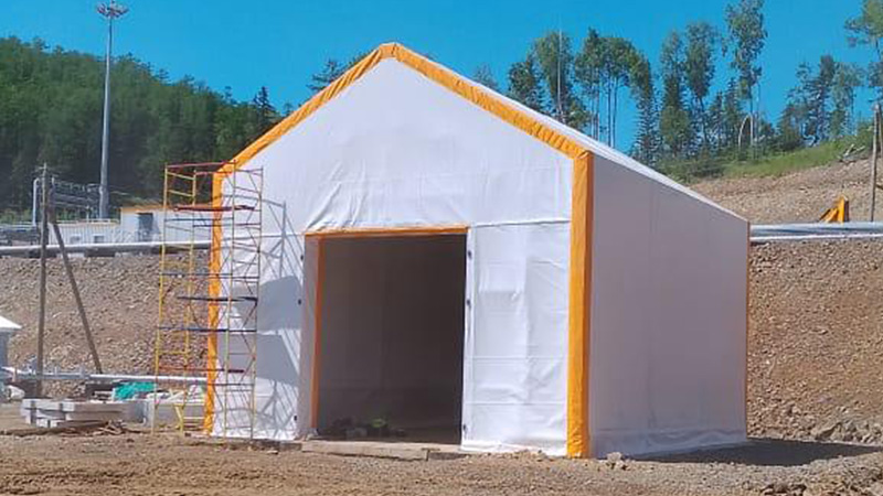 Мы изготовили и смонтировали на Байкале огромный каркасно-тентовый ангар (павильон) для проведения мероприятий. Размеры павильона 7*21*3,5 м, 20 окон из морозостойкой ткани, пластиковые двери, перегородки. Мы с честью выполнили это задание